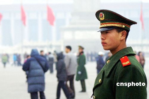 3月4日,全國兩會期間,北京警方多警種密切配合,對天安門等重要地區(qū)周密巡控,確保安全。中新社發(fā) 李根 攝