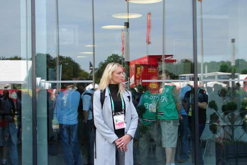 威廉王子的女保鏢: 2006年威廉王子現(xiàn)場(chǎng)觀看了英格蘭對(duì)巴拉圭的小組賽,為保證王子的安全,在他身邊配備了大量的保鏢和警察。圖為王子貼身女保鏢和英國(guó)警察工作時(shí)的狀態(tài),緊張而神秘。