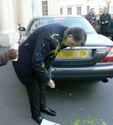 組圖:英國(guó)商務(wù)大臣遭抗議者奶油潑臉(2)