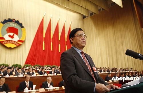 3月7日,全國政協(xié)十一屆二次會議在北京人民大會堂舉行第二次全體會議。許善達(dá)委員代表全國政協(xié)經(jīng)濟(jì)委員會作題為《把增加居民消費(fèi)作為最優(yōu)先的目標(biāo)之一》的發(fā)言。中新社發(fā) 盛佳鵬 攝