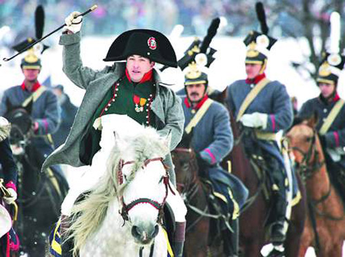軍事愛好者捷克小城重演奧斯特里茨戰(zhàn)役。提起捷克小城薩拉夫科夫,知道的人恐怕不多,但如果說出它的另一個(gè)名字“奧斯特里茨”,恐怕不知道的人不會(huì)太多,200年前發(fā)生在這里的一場大戰(zhàn)使歐洲大陸的一顆太陽從此處冉冉升起,他就是大名鼎鼎的法蘭西帝國皇帝拿破侖。戰(zhàn)場的硝煙早已消散,而英雄的傳奇卻從此流傳并吸引一批批仰慕者前來祭奠。3800名軍事迷在薩拉夫科夫重現(xiàn)了當(dāng)年法軍和奧俄聯(lián)軍的戰(zhàn)斗,以迎接奧斯特里茨戰(zhàn)役200周年紀(jì)念日。