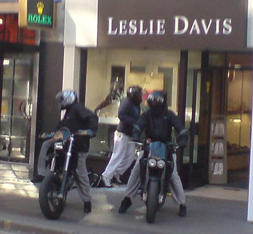中新網(wǎng)3月8日電 據(jù)英國(guó)媒體報(bào)道,6日,一群摩托黨在倫敦最繁華的大街上搶劫了一家珠寶店。這已經(jīng)是該團(tuán)伙第二次做案。實(shí)施搶劫的有4人,都戴著頭盔以隱藏面部,目擊者表示他們看上去不過是學(xué)生年紀(jì)。搶劫時(shí),其中兩人沖進(jìn)店里,用大錘砸碎櫥窗玻璃,拿走里面的手表和珠寶;另外兩人則一直開著引擎,等前者跳上車后即迅速離開。