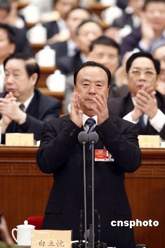 3月8日,全國政協(xié)十一屆二次會議第三次全體大會在北京人民大會堂舉行,主持會議的全國政協(xié)副主席白立忱向全體女委員表示節(jié)日的祝賀。中新社發(fā) 盛佳鵬 攝