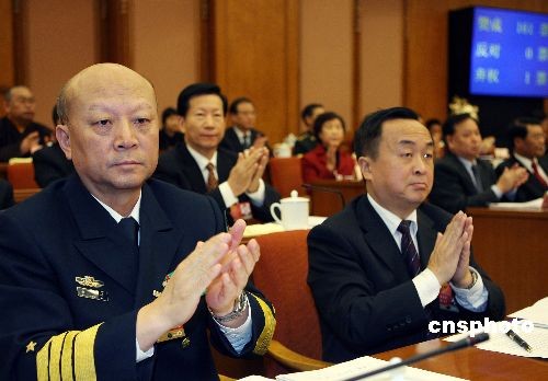 3月9日上午,十一屆全國人大二次會議在北京人民大會堂舉行第二次主席團(tuán)會議,主席團(tuán)成員、解放軍海軍司令員吳勝利上將出席。中新社發(fā) 任晨鳴 攝