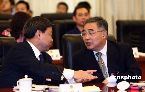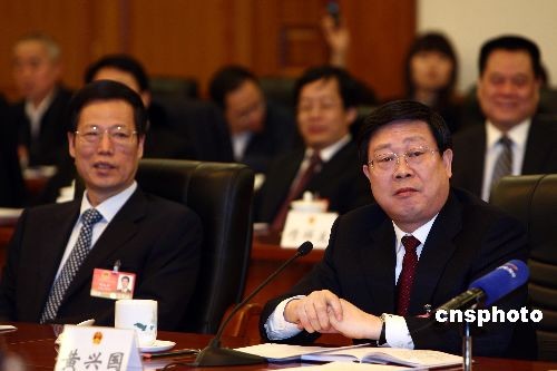 3月9日,全國人大天津代表團(tuán)在人民大會堂舉行全團(tuán)會議,天津市委書記張高麗、天津市長黃興國出席會議。中新社發(fā) 杜洋 攝