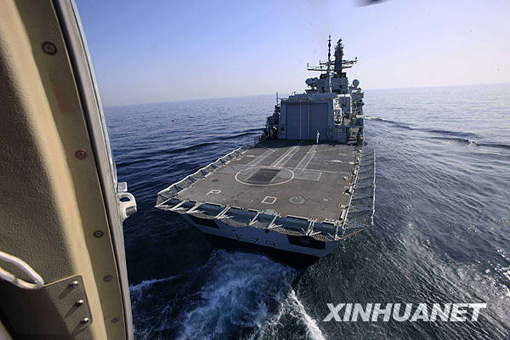 3月9日,在巴基斯坦南部卡拉奇港附近的阿拉伯海舉行的“和平-09”海上多國聯(lián)合軍事演習(xí)實兵演練中,中國海軍艦載直升機(jī)準(zhǔn)備在英國皇家海軍“波特蘭”號護(hù)衛(wèi)艦上降落。