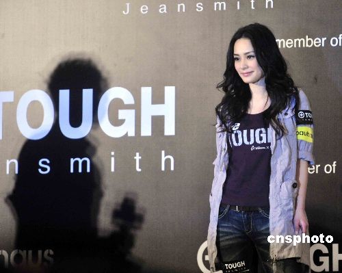 三月十日,“艷照風(fēng)波”事件女主角之一、“阿嬌”鐘欣桐,終于正式復(fù)工。以擔(dān)任一品牌牛仔褲亞太地區(qū)代言人的身份,并在香港某商場首次公開面對傳媒。中新社發(fā) 譚達(dá)明 攝