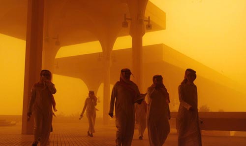 3月10日,沙特阿拉伯首都利雅得遭遇沙塵暴天氣,到處都是滾滾黃塵。沙特氣象部門稱,這次沙塵暴的強(qiáng)度達(dá)到了20年來的頂峰