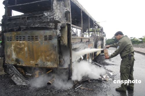 3月10日上午,廣東深圳一輛公交車在深南大道向東行至園博園站前時突然起火,大火燒了近半個小才被熄滅,整輛車被燒的只?蚣。所幸車上乘客及時逃脫,未造成人員傷亡。據(jù)初步了解,大火由于線路短路引起,具體原因有待進(jìn)一步的調(diào)查。