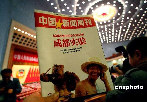 3月3日至13日,全國“兩會”在北京人民大會堂召開,與會人員在會前關注《中國新聞周刊》。中新社發(fā) 宋吉河 攝