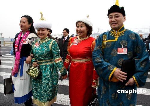 圖:少數(shù)民族委員盛裝步入大會(huì)堂
