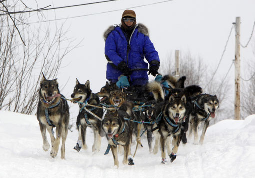 近日,在美國阿拉斯加的安克雷奇舉行了第三十七屆阿拉斯加狗拉雪橇大賽,來自各地的67支參賽隊一起向嚴(yán)寒和艱難的賽道發(fā)起挑戰(zhàn)。大賽的起點是阿拉斯加最大的城市安克雷奇,終點是靠近白令海峽的諾姆。賽程全長1800多公里,途中選手們穿越高山峻嶺,冰川凍河。由于路況復(fù)雜,天氣惡劣,這項賽事被認(rèn)為是當(dāng)今最具挑戰(zhàn)性的賽事之一。選手們需要大約9天的時間才能完成比賽,獲勝者將得到6萬9千美元的獎金和一輛皮卡。