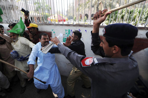3月15日,巴基斯坦前總理謝里夫的支持者在拉合爾舉行抗議集會(huì)時(shí)與警察發(fā)生沖突。