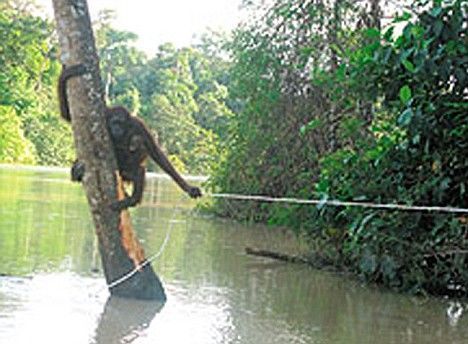 組圖:勇敢紅毛猩猩不畏洪水救幼仔(2)