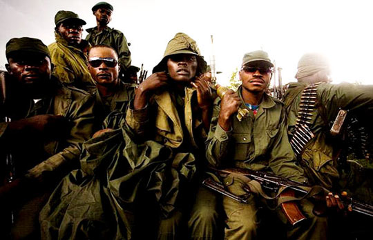 一群剛果士兵:一群剛果士兵在驅(qū)逐叛軍后坐在一輛吉普車上。(新聞?wù)掌陀涗浧?當(dāng)代事件一等獎(jiǎng))