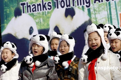 3月22日,在北京生活了9個(gè)月的8只奧運(yùn)大熊貓開始起程返回四川老家,北京動(dòng)物園特地舉辦了“奧運(yùn)熊貓返川儀式”,吸引萬(wàn)名觀眾前來(lái)依依惜別。中新社發(fā) 鄭雄增 攝