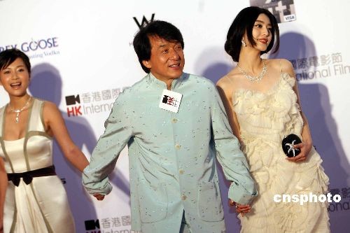 三月二十二日,巨星成龍攜女星范冰冰、徐靜蕾出席香港國(guó)際電影節(jié)開幕酒會(huì)。今屆香港國(guó)際電影節(jié)出席的影視紅星、嘉賓人數(shù)突破以往紀(jì)錄,比去年多出百分之五十八,成為陣容最強(qiáng)大的一屆。中新社發(fā) 洪少葵 攝