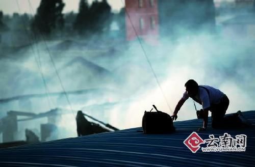 22日,因著火紙廠警戒線還沒有解除,很多記者都被擋在外面,尤其是一些扛著照相機的記者,更是惹眼。昆明某報社攝影記者高某昨日下午6點左右再次來到現(xiàn)場時,被擋在警戒線外。高某為了抓拍鏡頭,他爬到隔壁一家工廠的房頂上,不小心踩通房頂,“砰”地一聲,從6米多高房頂?shù)粼诘厣,他當時不能動彈,幸好被一起采訪的同事發(fā)現(xiàn)。
