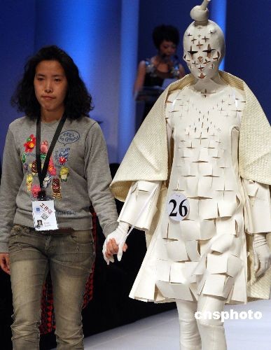 圖為模特展示具有環(huán)保理念的中國國際青年設計師時裝作品。中新社發(fā) 錢興強 攝