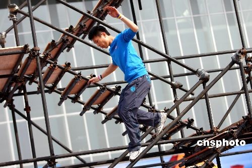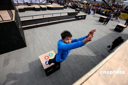 3月26日,世紀(jì)天樂杯——中國首屆跑酷運(yùn)動(dòng)國際公開賽在北京盛裝亮相。跑酷運(yùn)動(dòng)誕生于上世紀(jì)80年代的法國,意為把整個(gè)城市當(dāng)作一個(gè)大訓(xùn)練場,一切圍墻、屋頂都成為可以攀爬、穿越的對象,最初曾是法國部隊(duì)訓(xùn)練士兵的方法,目前是都市青年中流行的時(shí)尚運(yùn)動(dòng)。本次賽事為期四天,共有來自六個(gè)城市的跑酷隊(duì)參賽,比賽分團(tuán)體和個(gè)人計(jì)時(shí)賽。在當(dāng)天進(jìn)行的團(tuán)體比賽中,來自北京的“城市猴子”隊(duì)摘得桂冠。 中新社發(fā) 富田 攝