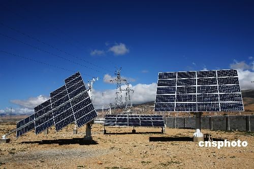 3月26日消息,隨著世界光伏產(chǎn)業(yè)的迅速發(fā)展,在空曠地區(qū)建設(shè)大規(guī)模光伏電站越來(lái)越受到人們的矚目。羊八井光伏電站就是我國(guó)第一座與高壓電網(wǎng)并聯(lián)運(yùn)行的光伏電站,發(fā)出的電能并入藏中電網(wǎng),供給拉薩市及周邊地區(qū)使用。經(jīng)過(guò)一年的實(shí)際運(yùn)行計(jì)量表明該電站年發(fā)電量為18.3萬(wàn)度左右,可以滿足約150戶居民的日常用電需求,每年可以節(jié)約75噸標(biāo)準(zhǔn)煤,減排二氧化碳275噸。羊八井100Kwp光伏示范電站在國(guó)內(nèi)首次采用直接并入10kv高壓電網(wǎng)的技術(shù)方案,在不影響原有電網(wǎng)的結(jié)構(gòu)和安全穩(wěn)定的情況下,為進(jìn)一步在西藏地區(qū)推廣太陽(yáng)能并網(wǎng)發(fā)電做出了示范。中新社發(fā) 扎西朗杰 攝