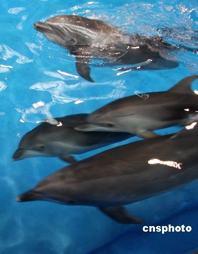 3月27日,北京海洋館十周年館慶紀(jì)念日,3只海豚幼仔首度公開與市民見面。這3只小海豚均為北京海洋館人工繁殖誕生,是原汁原味的“北京寶貝”。在北京海洋館十周年慶活動期間,游客可在鯨豚灣展區(qū)透過寬大的亞克力展窗看到小海豚在水下的全部生活狀態(tài)。中新社發(fā) 徐曦弋 攝