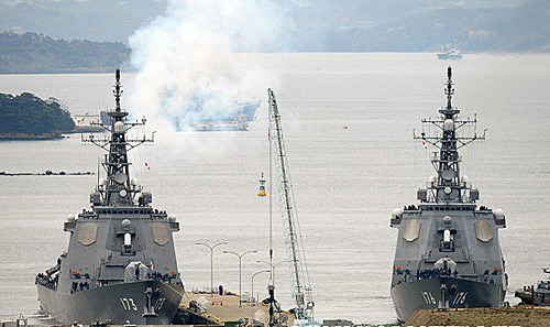 未搭載SM3的宙斯盾艦“霧島”號離開神奈川縣橫須賀基地!敖饎偂焙汀傍B!睂⒉渴鹪谌毡竞:S;“霧島”號則將部署在太平洋海域,負(fù)責(zé)偵察導(dǎo)彈的飛行路徑。這三艘艦只將和部署在日本海附近海域的美軍宙斯盾艦等合作,對朝鮮預(yù)告于4月4日至8日期間進(jìn)行發(fā)射“衛(wèi)星”進(jìn)行戒備。