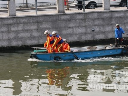 記者在現(xiàn)場看到,消防與水務(wù)部門已派出兩艘小艇在河道內(nèi)開展搜尋工作。據(jù)一名工作人員向記者介紹,該河道最深處達(dá)到三四米,目前尚未發(fā)現(xiàn)該男子的蹤跡。薛驍翔 攝