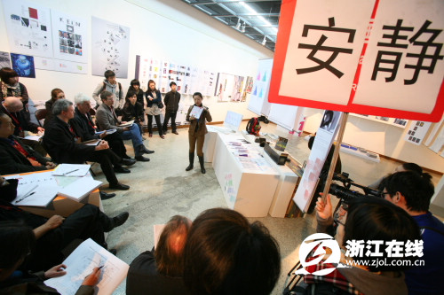 這是今天下午在中國美院美術(shù)館中德碩士CDK項(xiàng)目的答辯會(huì),參加答辯的碩士由中國美院和柏林藝術(shù)大學(xué)合作培養(yǎng)。用網(wǎng)絡(luò)的話說,這是一個(gè)很開放而且酷斃了的畢業(yè)答辯會(huì),堪稱中國史上最牛。作品也很有意思,比如說“美院象山校區(qū)導(dǎo)向標(biāo)志設(shè)計(jì)”,“杭州地鐵標(biāo)識(shí)設(shè)計(jì)”……大多設(shè)計(jì)和我們生活息息相關(guān),甚至和杭州這個(gè)城市很合拍,看了展覽你可能對(duì)現(xiàn)有的一些城市細(xì)節(jié)不滿。