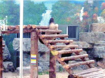 沒(méi)想到,正當(dāng)游客們?yōu)椤氨焕А毙茇堉睍r(shí),那只熊貓自己蕩了幾下,試圖抓住木梯的架子做支撐。嘗試了幾次后,熊貓突然用力一起身,抓住木架的平臺(tái),從木梯縫隙中抽出肥碩的身體,順著欄桿爬了下來(lái)。胡先生說(shuō),整個(gè)過(guò)程不到5分鐘,“很可愛(ài),沒(méi)想到它圓嘟嘟的卻挺靈活”。成功“自救”的大熊貓似乎驚魂未定,下了木架后就坐到石頭后“安神”。游客見(jiàn)到此情景,不禁啞然失笑,為它鳴掌鼓勵(lì)。