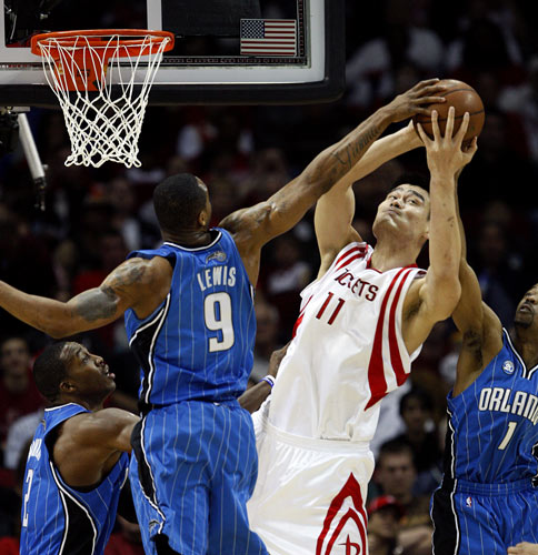 中新網(wǎng)4月8日電 北京時(shí)間今日清晨,休斯敦火箭在主場(chǎng)迎戰(zhàn)東部勁旅魔術(shù)。最終火箭在主場(chǎng)以93-83輕松戰(zhàn)勝對(duì)手,穩(wěn)居西部第四。姚明在比賽中拿下20分16個(gè)籃板的大兩雙,兩次封蓋人稱“魔獸”的魔術(shù)隊(duì)當(dāng)家球星霍華德,在中鋒對(duì)決中完爆對(duì)手。