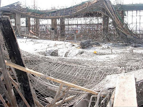 4月7日下午6:30,正在新建的朔州火車站站房工程,在一層頂板現澆混凝土澆注過程中,發(fā)生頂板支撐局部垮塌。7名工人受傷,其中4名輕微骨折,3名皮膚擦傷。