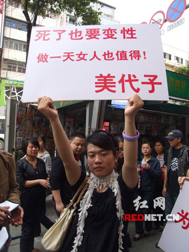 前不久申清清在接受記者采訪時曾經(jīng)表示,曾在江西舉過關(guān)于變性的牌子,并且在江西有醫(yī)院愿幫助他完成手術(shù),但具體事宜仍未敲定。既然馬上要做手術(shù)了,為何還要“故技重施”呢?申清清說,此次再來長沙舉牌,一方面希望通過“現(xiàn)身表演”,呼吁社會能夠容忍并接受變性人的存在,另一方面,希望能有更多的醫(yī)院能夠關(guān)注他和美代子,并能夠真切地表態(tài),可以幫助他們實現(xiàn)“女人夢”。