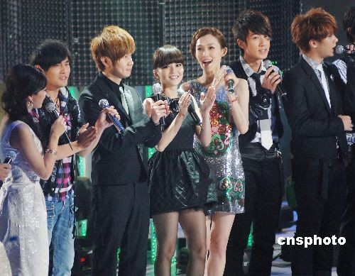 4月17日晚,2009[雪碧]中國(guó)原創(chuàng)音樂(lè)流行榜超級(jí)紅人館音樂(lè)晚會(huì)在北京精彩上演,周杰倫、林俊杰、陳奕迅、蔡卓妍、許巍、飛輪海、張韶涵、胡彥斌、范瑋琪、李宇春等眾多華語(yǔ)樂(lè)壇的閃耀巨星悉數(shù)到場(chǎng),臺(tái)上演出盛況空前,臺(tái)下互動(dòng)熱力爆棚。中新社發(fā) 李學(xué)仕 攝