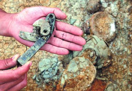 記者還在現場看到一個銅質弩機殘件。周科華告訴記者,弩機是射箭的工具,為戰(zhàn)國晚期器物,可能是目前發(fā)現的最早的銅質弩機,考古價值極大。另外,還有鐵劍、鐵斧、蒜頭壺、陶罐、陶俑等也較有特色。