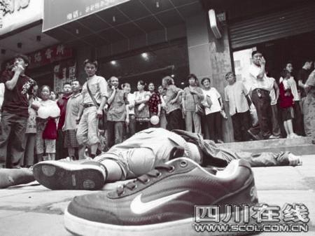 遂州中路是遂寧的繁華街道,現(xiàn)場(chǎng)很快聚集了很多圍觀市民。圍觀市民看見(jiàn):躺在地上的死者很像一個(gè)高中生,年齡十八九歲,右手挽有一黑色雙肩背包!25日是高考成績(jī)公布的日子,這個(gè)人又像高中生,是不是他沒(méi)考好而跳樓自殺哦!薄鞍!榜上無(wú)名,腳下有路,再怎么說(shuō)也不應(yīng)該走這條路呀!”圍觀市民議論紛紛,“高考生跳樓”的消息不脛而走。