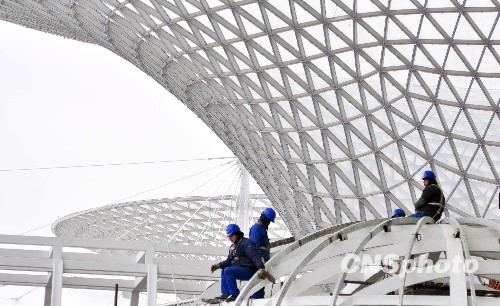 2010年1月22日,作為世博會“一軸四館”永久場館之一的世博軸工程正式竣工,這標志著世博建設邁入新階段。世博軸是由地上二層、地下二層組成的立體交通樞紐,長約1045米,寬約130米,總占地面積約13萬平方米,總建筑面積25.1萬平方米,地下空間建筑面積約19萬平方米,地上建筑面積約6.1萬平方米。世博軸工程是2010年上海世博會的主入口和中央人行立體交通樞紐,是本屆世博會的地標性建筑。世博軸工程的竣工標志著工程建設階段的完成,即將邁入運營準備階段。預計4月15日之前完成運營人員培訓、功能用房和商業(yè)裝修。并計劃4月15日-4月底進行試運營。中新社發(fā) 沈春琛 攝