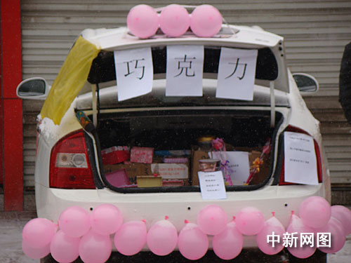 中新網(wǎng)2月14日電(高增平)14日上午,山西呂梁市區(qū)世紀(jì)廣場(chǎng)附近不少護(hù)花使者冒著小雪在擺放的各式各樣的玫瑰花。人們注意到,今天當(dāng)?shù)亟诸^許多過(guò)往車上也乘機(jī)擺放出巧克力招引著青年人方便為情侶送出禮物。