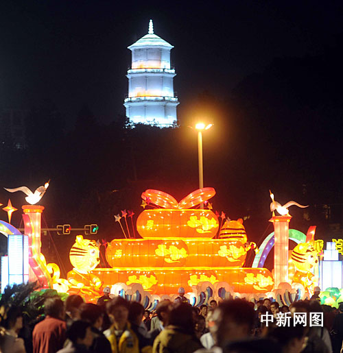 2月25日晚,2010福州南后街元宵燈會上燈如海人如潮!翱茖W(xué)發(fā)展開新篇”、“文明祥和奏和諧”、“生態(tài)優(yōu)美話宜居”、“閩臺五緣促交流”等6個大型主題燈組及1000多盞傳統(tǒng)花燈,集中展示了“揚(yáng)帆海西,福滿榕城”的燈會內(nèi)涵。壯觀的燈組、精美的花燈,吸引數(shù)以萬計(jì)的前來市民觀燈賞燈,流連忘返。中新網(wǎng)發(fā) 劉可耕 攝