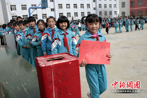 3月30日,甘肅積石山縣吹麻灘小學(xué)組織全校學(xué)生開展“每人捐贈(zèng)一瓶飲用水”活動(dòng),為西南旱區(qū)盡一點(diǎn)綿薄之力,為災(zāi)區(qū)小朋友送去一片愛心。積石山保安族東鄉(xiāng)族撒拉族自治縣是中國保安族的主要聚居地,也是甘肅省唯一的一個(gè)多民族自治縣。積石山是國家級貧困縣,1998年開始,由國僑辦定點(diǎn)幫扶。滕漢霞 攝