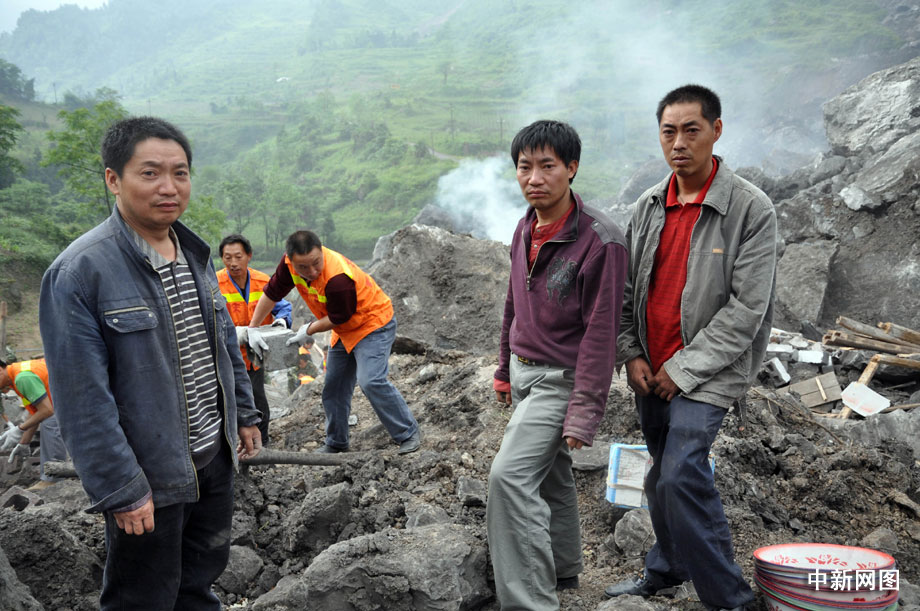6月7日下午,黃建華(左)、黃昆華(中)和黃彬華三兄弟一直在垮塌民房旁守候。黃建華告訴記者,這家47歲的男主人黃興華是他們的大哥。事故發(fā)生時,黃興華和母親簡德會、妻子葉添芬等親屬還都在屋內(nèi)。 曹多然 攝