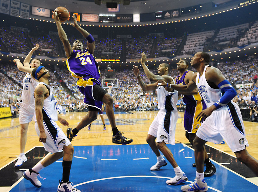 北京時(shí)間6月15日,洛杉磯湖人隊(duì)與奧蘭多魔術(shù)隊(duì)的總決賽第五場比賽繼續(xù)在奧蘭多進(jìn)行。最終,握有賽點(diǎn)的湖人隊(duì)并沒有再給奧蘭多人機(jī)會(huì),他們以4-1的總比分淘汰魔術(shù),成功的為湖人摘下第15個(gè)總冠軍?票瓤诚30分6籃板5助攻,這也是自O(shè)K組合解散后,科比首次以“球隊(duì)老大”的身份率隊(duì)贏得NBA總冠軍。