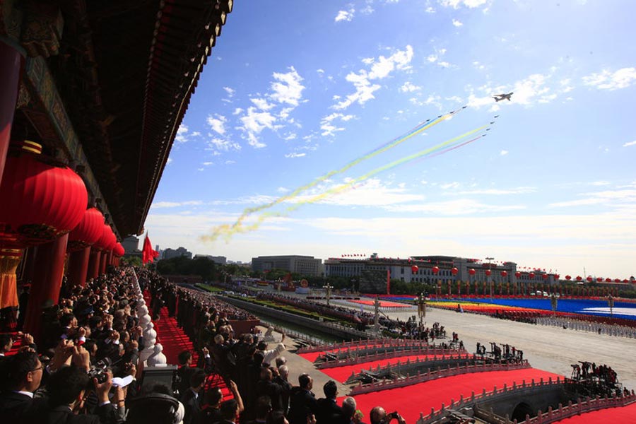 2009年10月1日,首都各界慶祝中華人民共和國成立60周年大會在北京舉行?罩蟹疥犜诒本┥峡振傔^。