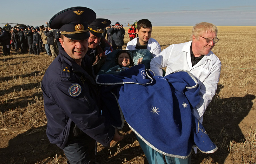 10月11日,俄羅斯“聯(lián)盟TMA-14”載人飛船攜加拿大太空游客蓋·拉利伯特及兩名宇航員一起返回地球,成功在哈薩克斯坦著陸。來源:中國(guó)新聞網(wǎng)