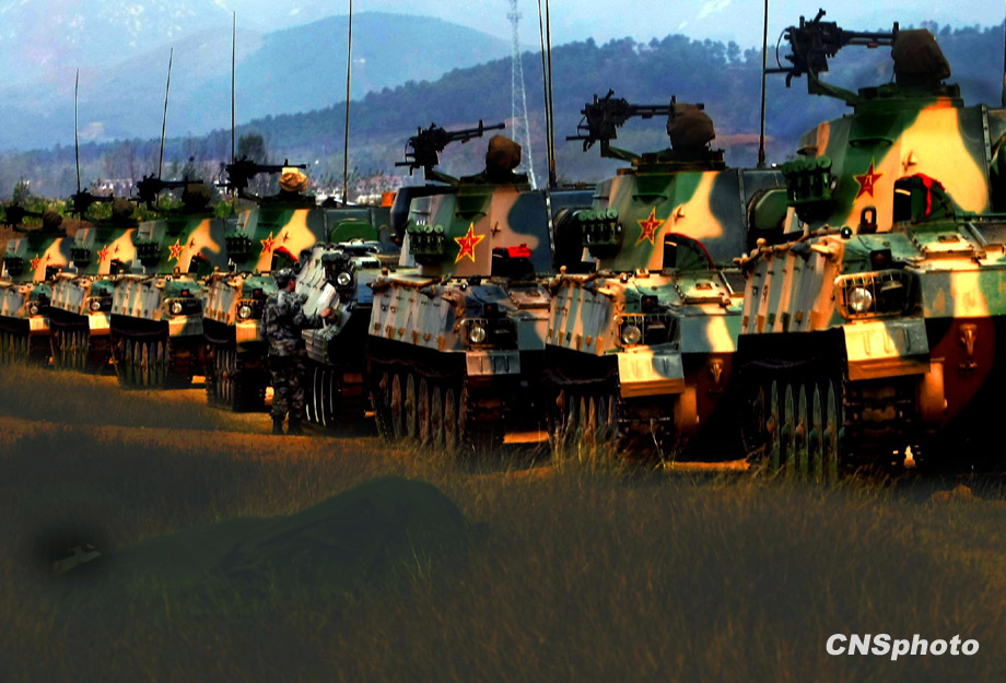 解放軍濟南軍區(qū)“前鋒-2009A”軍事演習,將于10月21日在某合同戰(zhàn)術訓練基地舉行,參加演習部隊10月20日組織戰(zhàn)前動員。這次演習主要是由兵力兵器數(shù)量規(guī)模向信息火力效能聚優(yōu)轉變、指揮的重心由主攻方向上的重點突破向作戰(zhàn)關節(jié)要害的體系毀癱轉變、火力的運用由概略粗放決策向科學精細籌劃轉變、協(xié)同的重點由地面步坦行動向陸空火力協(xié)調(diào)轉變、行動的控制由時間位置推進量向效果態(tài)勢達成度轉變、作戰(zhàn)的目的由殲敵奪地向控要制權轉變。 中新社發(fā) 宋吉河 攝