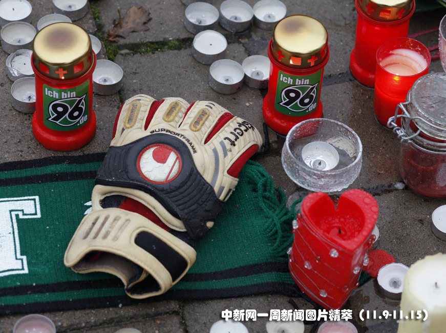 11日(周三),德國球迷紀(jì)念10日與火車相撞自殺身亡的德國男足門將恩克。圖片來源:中國新聞網(wǎng)