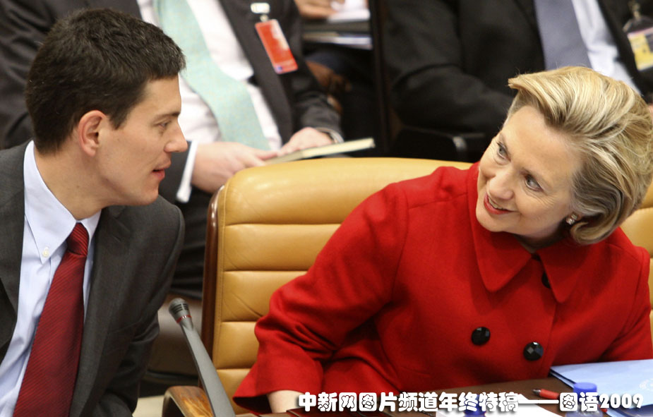 打情罵俏:2009年12月4日,布魯塞爾北約外長會議美國國務卿希拉里與英國外交大臣米利班德兩人有說有笑,關系似乎十分“曖昧”。