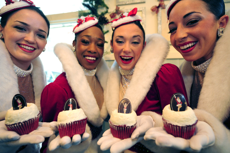 12月8日,美國紐約洛克茨無線電城“火箭女郎”舞蹈團的隊員們近日與蛋糕店聯(lián)合推出演出套票,買蛋糕的觀眾可以以更優(yōu)惠的價格購得演出票。圖片來源:中國新聞網(wǎng)