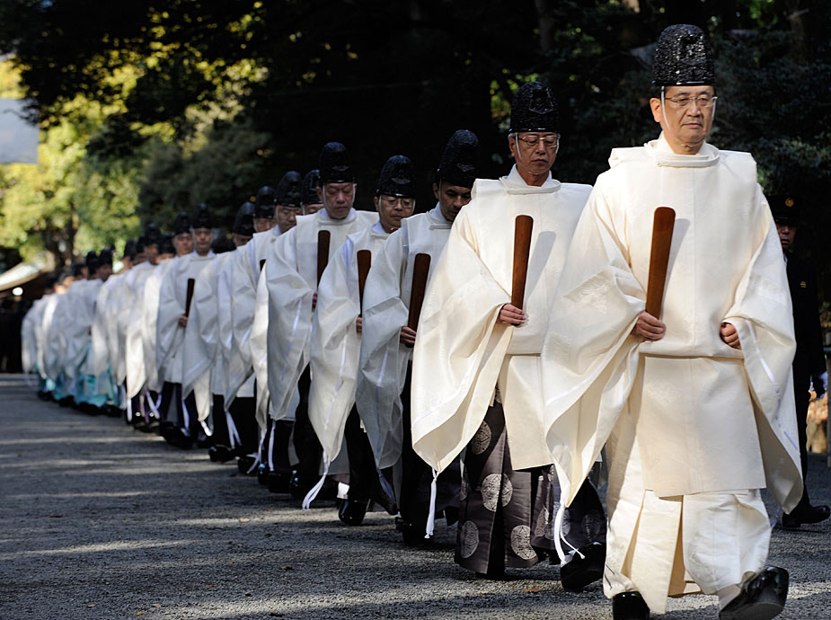 圖為圖為12月31日,日本東京僧人走在去祭祀的路上。每年日本都要在新年來臨之際舉行祈福儀式。