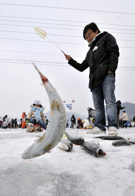 2010年1月9日,韓國(guó)華川郡,一年一度的華川山鱒魚(yú)節(jié)當(dāng)日舉行。圖片來(lái)源:中國(guó)新聞網(wǎng)